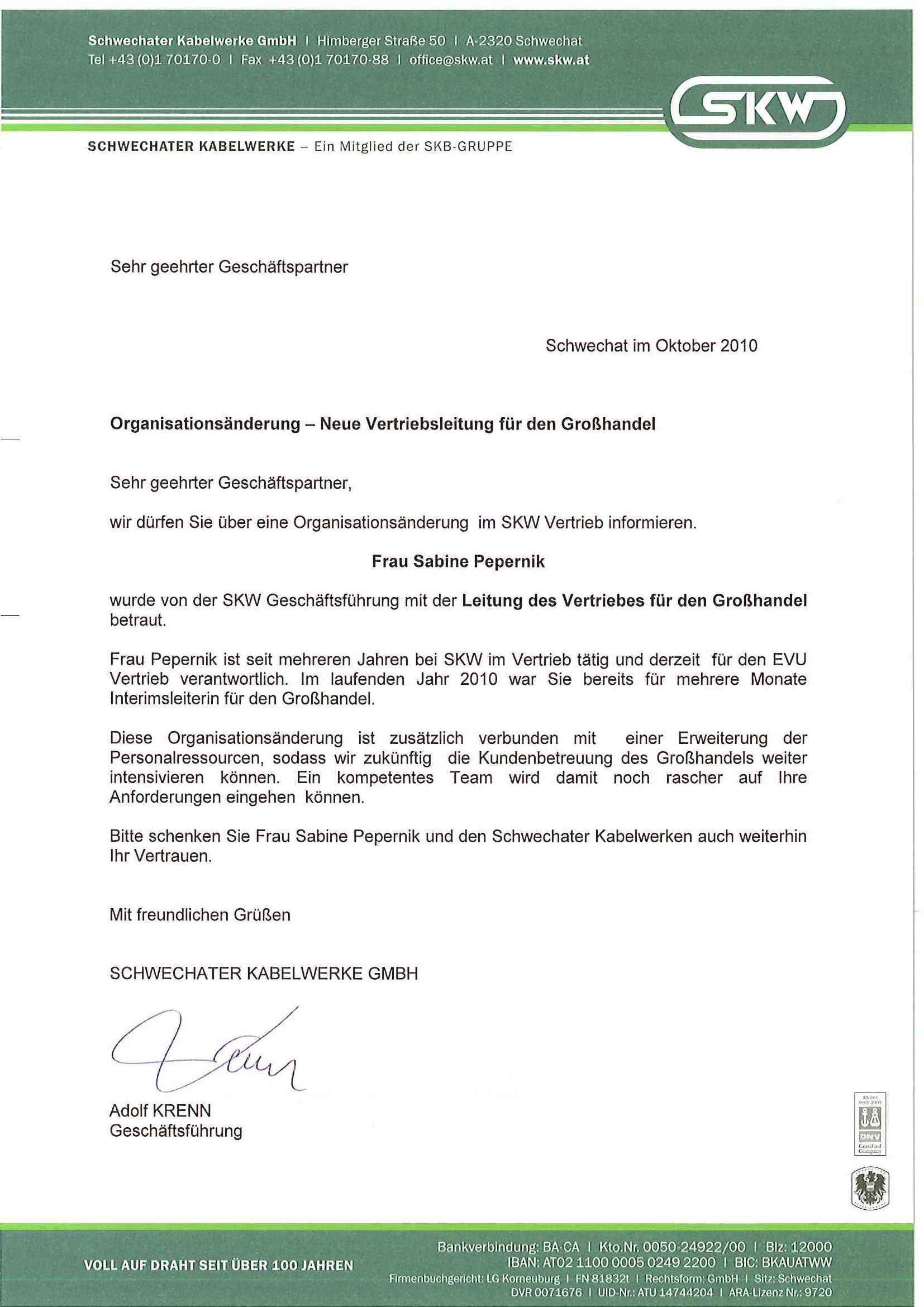 | Neue Abteilungsleitung für den Großhandel | Frau Sabine Pepernik übernimmt mit 1.10.2010 die Leitung der Abteilung Großhandel. |